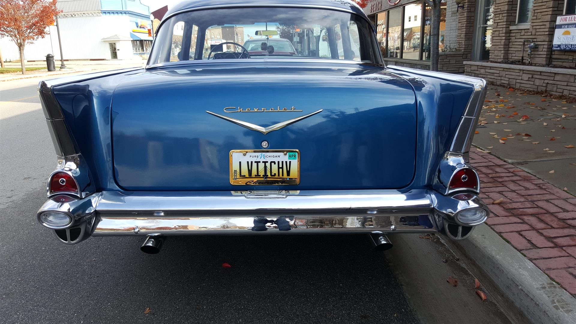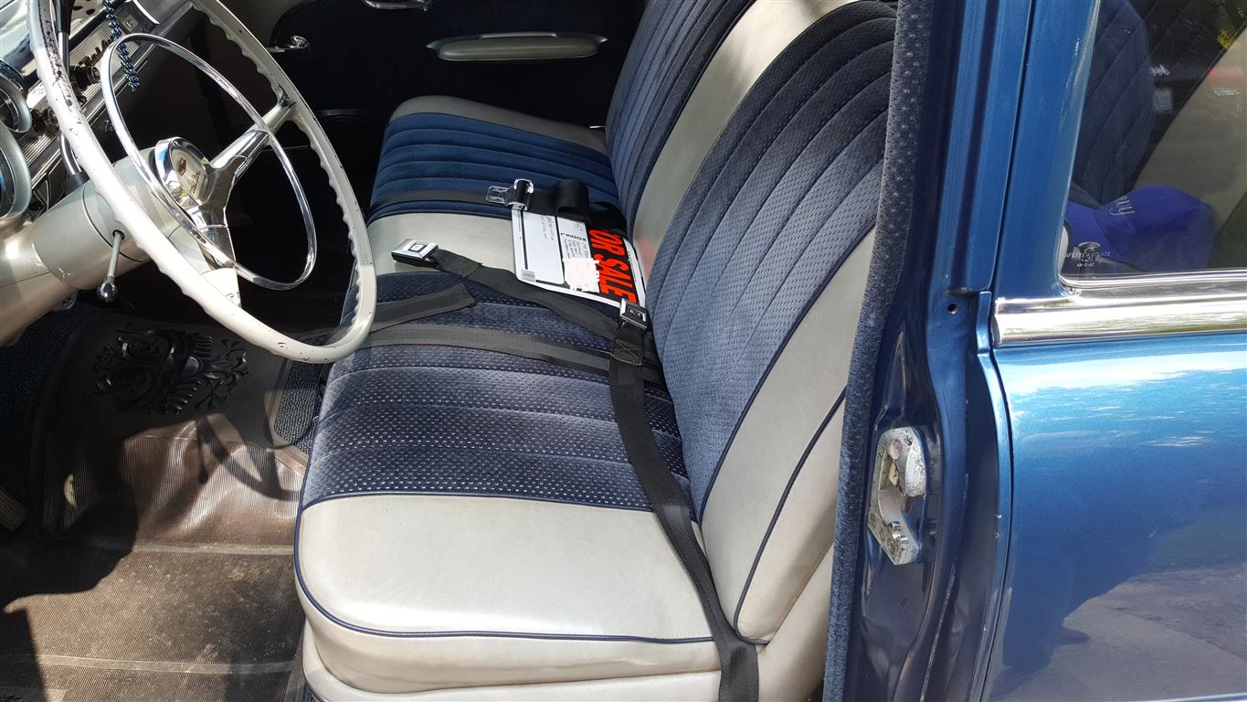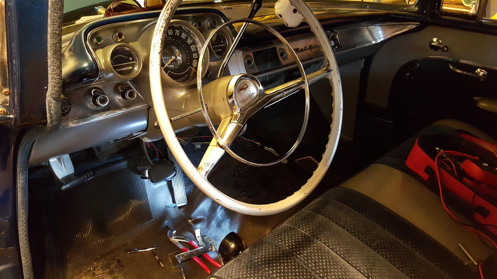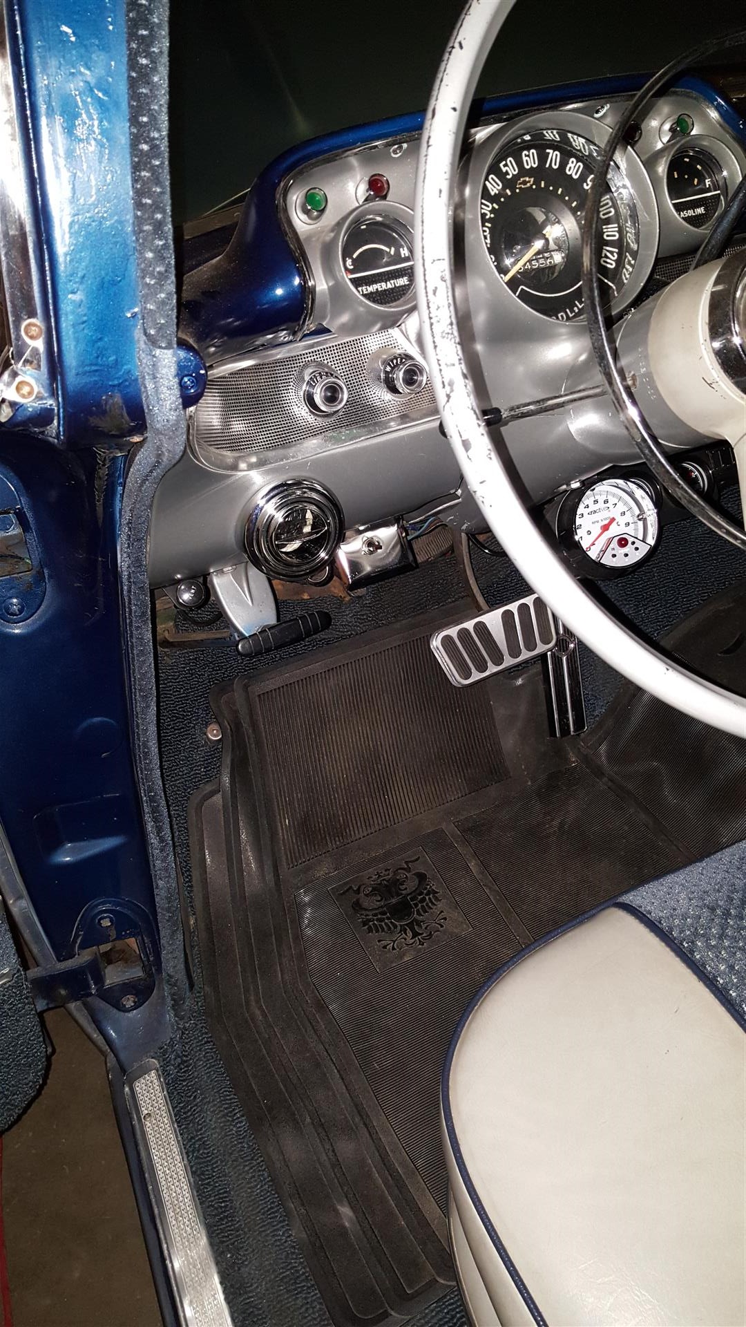 These are photos of our 1957 Chevy. The first sixteen photos document the 2005 replacement of a 283 engine and drive train with a 350 engine, drive train, and suspension changes. The photos 17 to 26 show the car's appearance when we purchased the car in Fall of 2015. Photos 27 to 33 show cosmetic changes. Photos 34 to 42 show the changes resulting from adding A/C to the Chevy. Photos 43 to 51 show more cosmetic changes. Photos 52 to 53 show winter storage area. Photos 54 to 107 show body work, painting, and some other cosmetic changes. Photos 108 to 117 show more cosmetic changes. After a brief drive in June of 2016, it became apparent that additional cooling was required, also during this run a severe clatter started in the engine. Photos 118 - 119 show the new BeCool radiator being installed. The clatter was discoverd to be a broken valve spring. Photos 120 to 123 show this problem. After replacing all the valve, inner and outer, springs, we hope that the problem is cured for a long time. Photos 124 to 131 show the solution to the 57 Chevy heating problem when going under 15 mph. Photos 132 to 134 show a problem with A/C condenser coming loose from the radiator and its repair. Photos 135 to 137 show the sound system power supply used at car shows. Photo 138 shows a new overflow tank and battery tray. Photos 139 to 141 show the appearance of the 57 Chevy in 1987. Photos 142 to 145 show the new headlights and the buckets they sit in when on the 57 Chevy. Photos 146 to 152 show new bucket seats and beginning of Center Console. Lost glove box space when AC added. Center Console will return glove box space and provide BackUp Camera, cup holders, and switches for cooling fans on radiator, BackUp Lights(column switch broken no correct replacement available), USB ports, 12 v power point, and any other switches needed. Photos 153 to 160 show the progress of the center console to it's completion. Photos 161 to 164 show the center console in our 57 Chevy. Photos 165 to 168 show the couch made from the front bench seat from the 57 Chevy. Photos 169 to 172 show the finished center console.