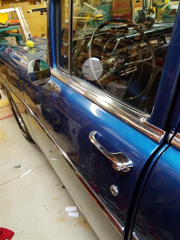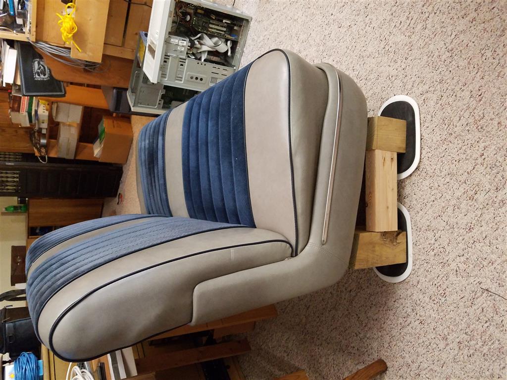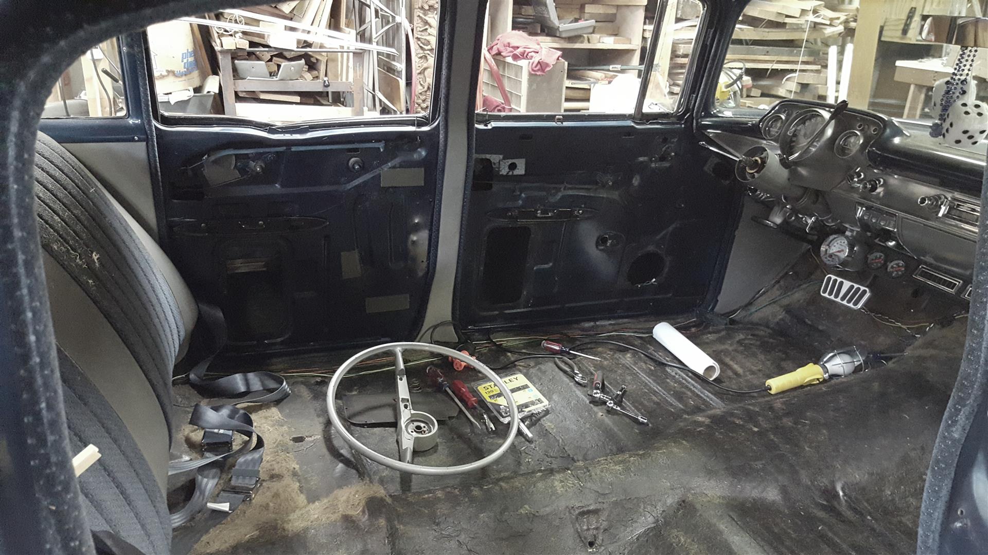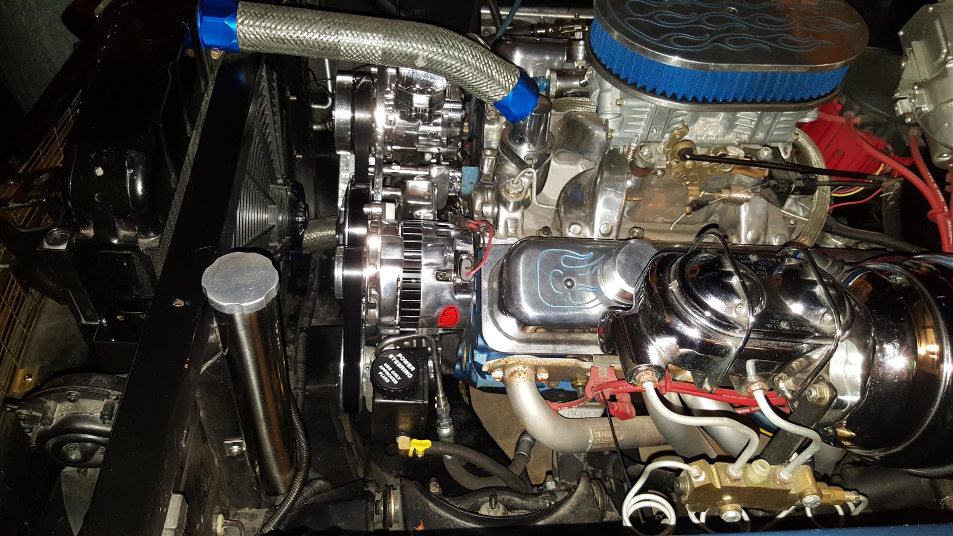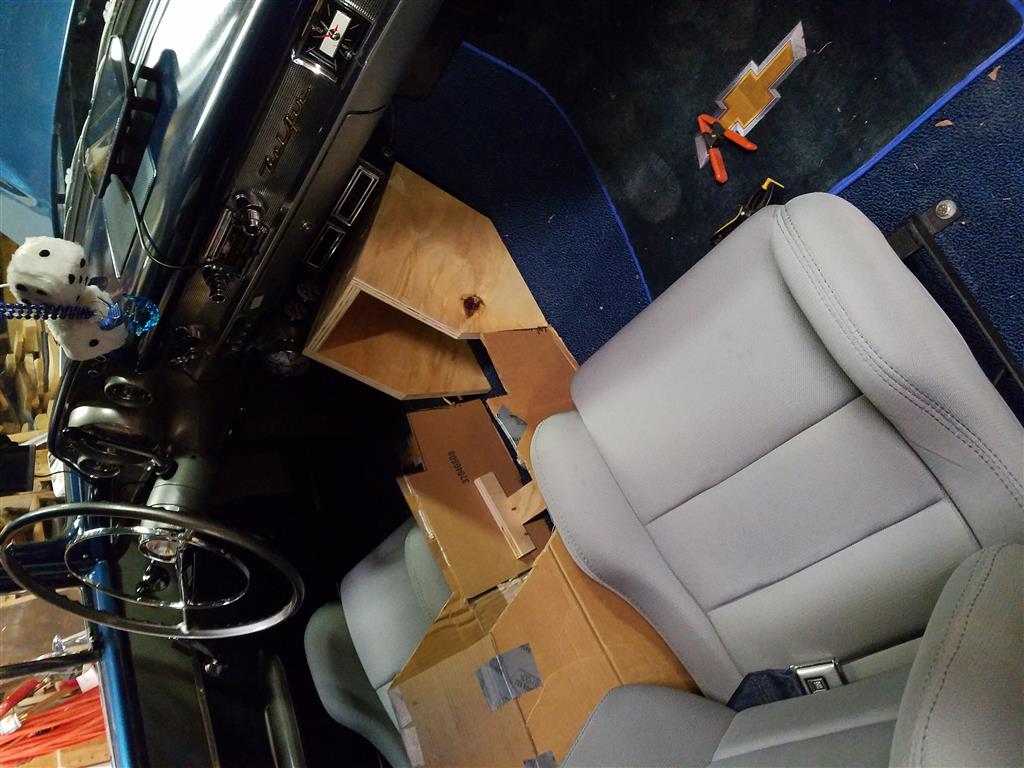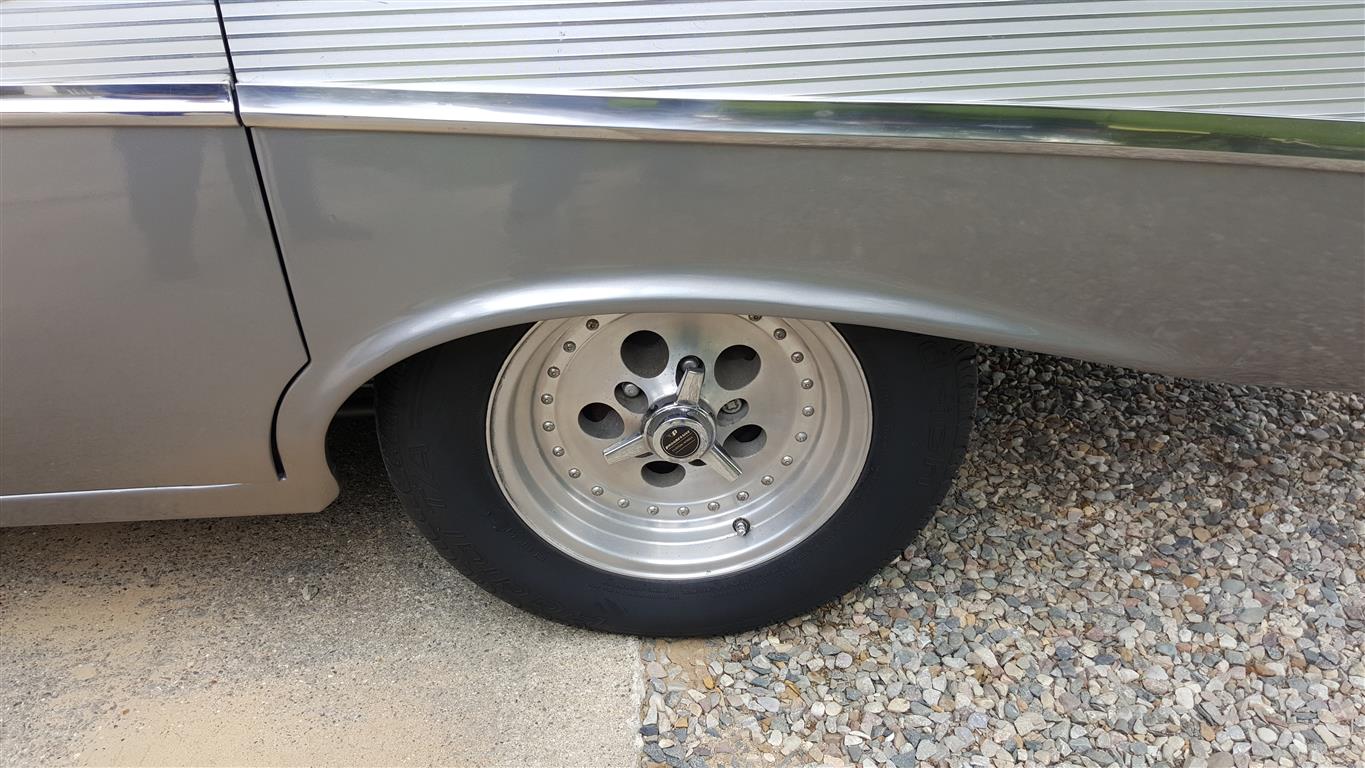 These are photos of our 1957 Chevy. The first sixteen photos document the 2005 replacement of a 283 engine and drive train with a 350 engine, drive train, and suspension changes. The photos 17 to 26 show the car's appearance when we purchased the car in Fall of 2015. Photos 27 to 33 show cosmetic changes. Photos 34 to 42 show the changes resulting from adding A/C to the Chevy. Photos 43 to 51 show more cosmetic changes. Photos 52 to 53 show winter storage area. Photos 54 to 107 show body work, painting, and some other cosmetic changes. Photos 108 to 117 show more cosmetic changes. After a brief drive in June of 2016, it became apparent that additional cooling was required, also during this run a severe clatter started in the engine. Photos 118 - 119 show the new BeCool radiator being installed. The clatter was discoverd to be a broken valve spring. Photos 120 to 123 show this problem. After replacing all the valve, inner and outer, springs, we hope that the problem is cured for a long time. Photos 124 to 131 show the solution to the 57 Chevy heating problem when going under 15 mph. Photos 132 to 134 show a problem with A/C condenser coming loose from the radiator and its repair. Photos 135 to 137 show the sound system power supply used at car shows. Photo 138 shows a new overflow tank and battery tray. Photos 139 to 141 show the appearance of the 57 Chevy in 1987. Photos 142 to 145 show the new headlights and the buckets they sit in when on the 57 Chevy. Photos 146 to 152 show new bucket seats and beginning of Center Console. Lost glove box space when AC added. Center Console will return glove box space and provide BackUp Camera, cup holders, and switches for cooling fans on radiator, BackUp Lights(column switch broken no correct replacement available), USB ports, 12 v power point, and any other switches needed. Photos 153 to 160 show the progress of the center console to it's completion. Photos 161 to 164 show the center console in our 57 Chevy. Photos 165 to 168 show the couch made from the front bench seat from the 57 Chevy. Photos 169 to 172 show the finished center console.