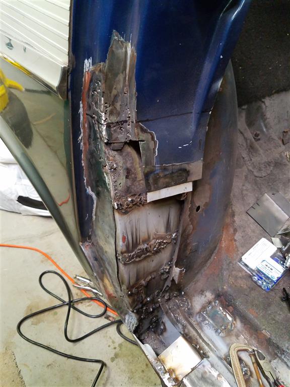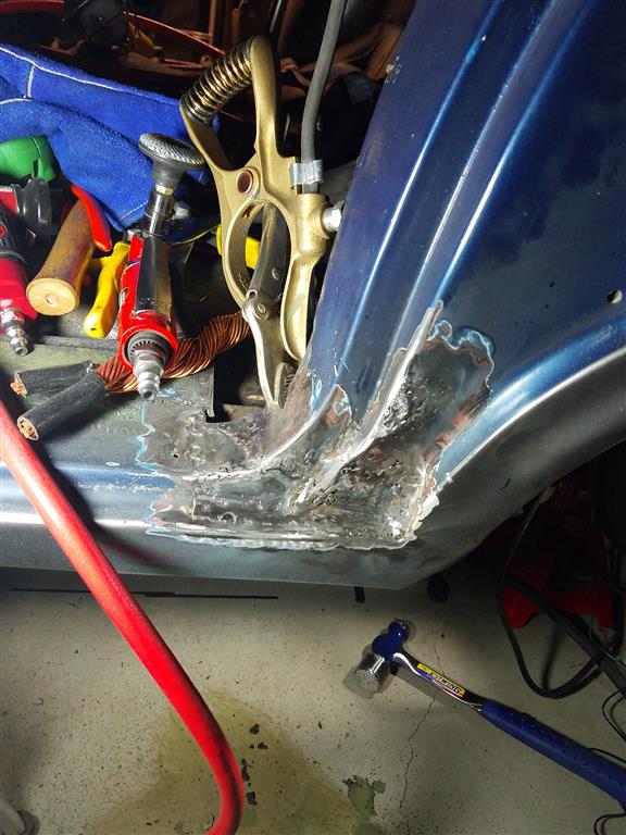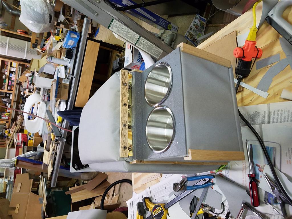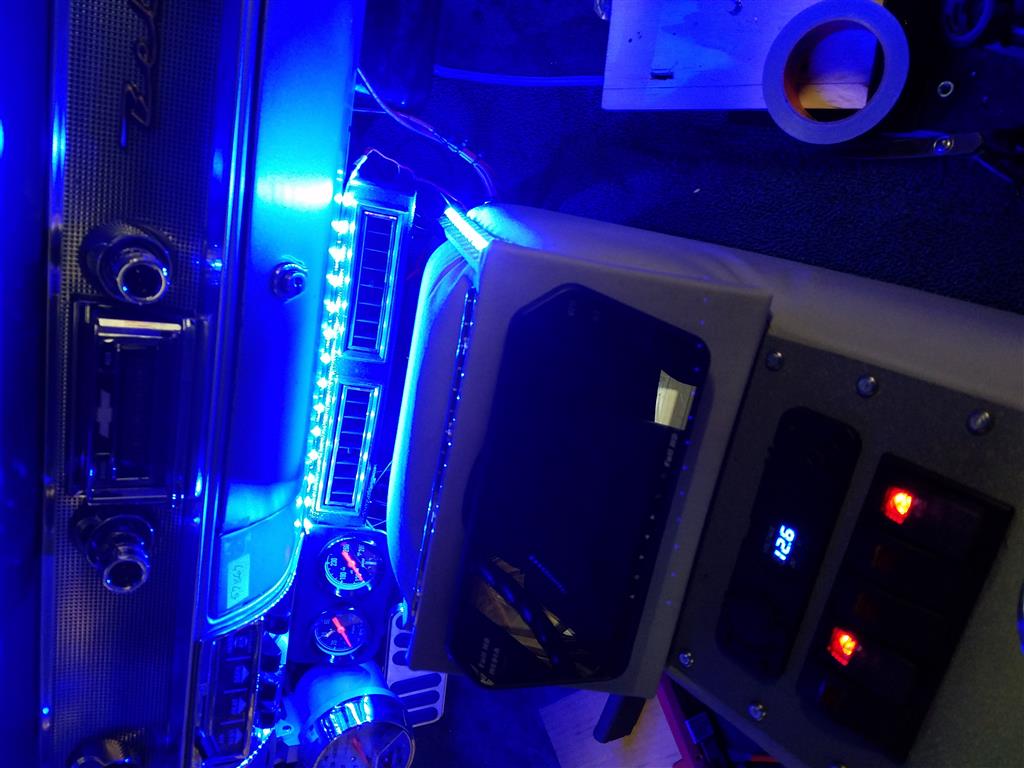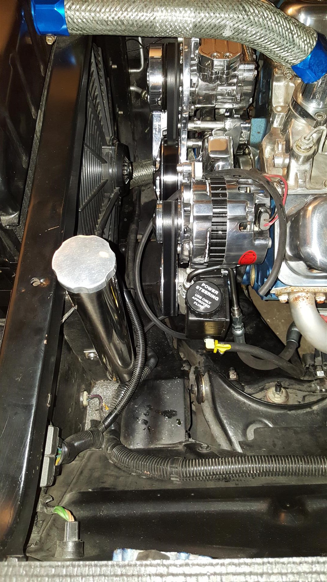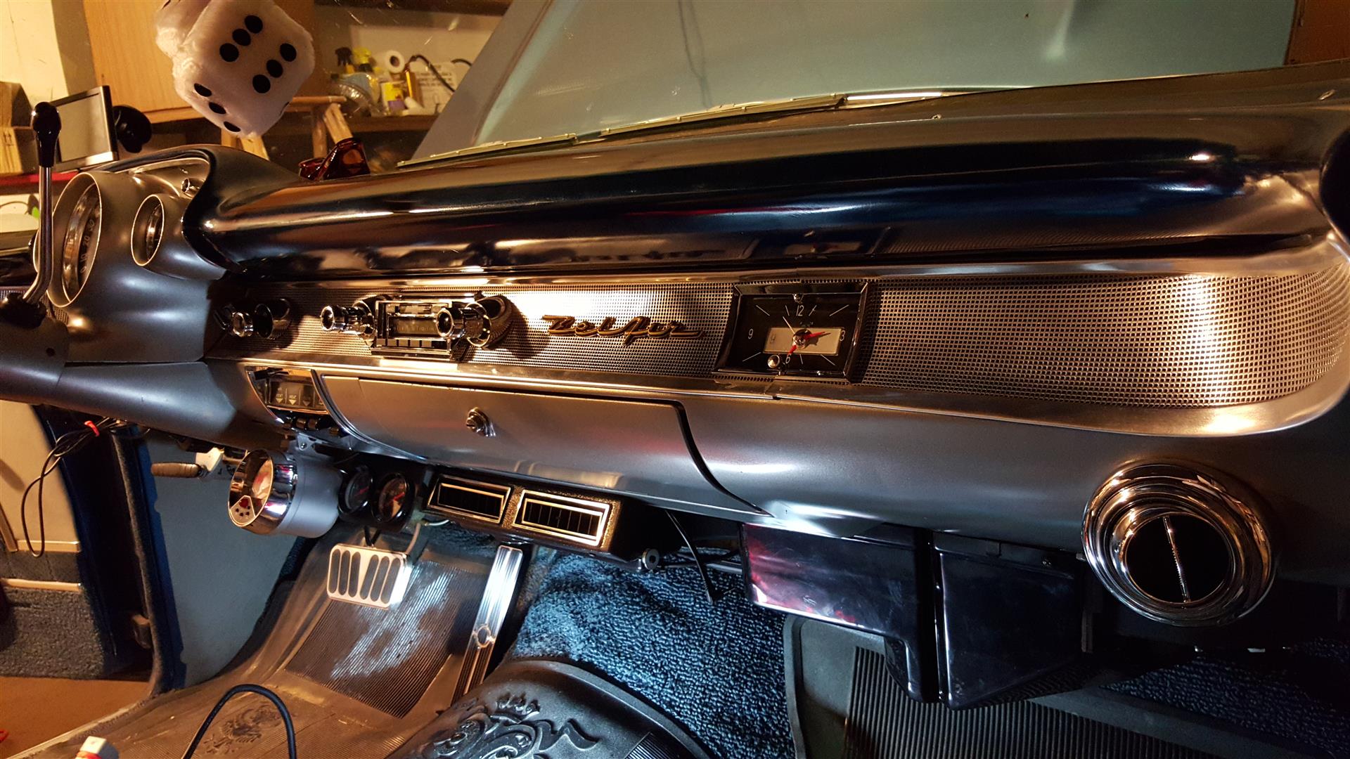 These are photos of our 1957 Chevy. The first sixteen photos document the 2005 replacement of a 283 engine and drive train with a 350 engine, drive train, and suspension changes. The photos 17 to 26 show the car's appearance when we purchased the car in Fall of 2015. Photos 27 to 33 show cosmetic changes. Photos 34 to 42 show the changes resulting from adding A/C to the Chevy. Photos 43 to 51 show more cosmetic changes. Photos 52 to 53 show winter storage area. Photos 54 to 107 show body work, painting, and some other cosmetic changes. Photos 108 to 117 show more cosmetic changes. After a brief drive in June of 2016, it became apparent that additional cooling was required, also during this run a severe clatter started in the engine. Photos 118 - 119 show the new BeCool radiator being installed. The clatter was discoverd to be a broken valve spring. Photos 120 to 123 show this problem. After replacing all the valve, inner and outer, springs, we hope that the problem is cured for a long time. Photos 124 to 131 show the solution to the 57 Chevy heating problem when going under 15 mph. Photos 132 to 134 show a problem with A/C condenser coming loose from the radiator and its repair. Photos 135 to 137 show the sound system power supply used at car shows. Photo 138 shows a new overflow tank and battery tray. Photos 139 to 141 show the appearance of the 57 Chevy in 1987. Photos 142 to 145 show the new headlights and the buckets they sit in when on the 57 Chevy. Photos 146 to 152 show new bucket seats and beginning of Center Console. Lost glove box space when AC added. Center Console will return glove box space and provide BackUp Camera, cup holders, and switches for cooling fans on radiator, BackUp Lights(column switch broken no correct replacement available), USB ports, 12 v power point, and any other switches needed. Photos 153 to 160 show the progress of the center console to it's completion. Photos 161 to 164 show the center console in our 57 Chevy. Photos 165 to 168 show the couch made from the front bench seat from the 57 Chevy. Photos 169 to 172 show the finished center console.